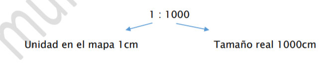 Escala 1:1000 indica que la reducción de la realidad al mapa es de mil veces, es decir la realidad se ha reducido mil veces para ser representada.