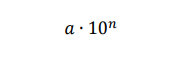 Donde «a» es el coeficiente de mantisa, es un número decimal cuya parte entera tiene una sola cifra distinta de cero, y «n» es el exponente que indica la potencia de diez. El exponente «n» puede ser positivo si el número es grande o negativo si el número es pequeño.