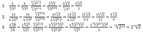 Para eliminar la raíz del denominador hay que multiplicar numerador y denominador por la raíz n-ésima con el radicando elevado a la diferencia entre el índice de la raíz y su exponente: