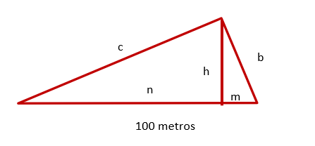 Ej. 2 Tenemos un triángulo rectángulo, como el de la figura en el que se conoce la hipotenusa a=100 m y el área A=2400 m2. Halla: