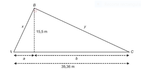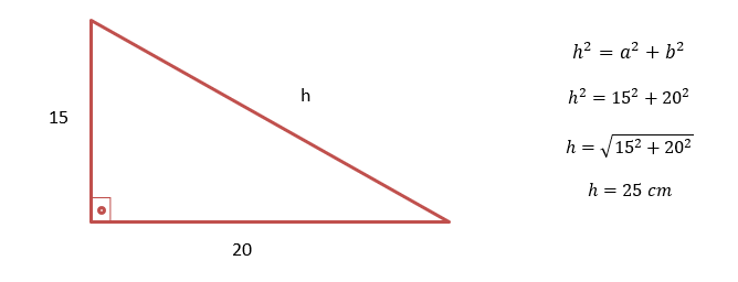 - En un triángulo rectángulo, los catetos miden b=20 cm y c=15 cm. Calcular la hipotenusa del triángulo.