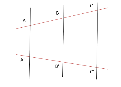 Si varias paralelas son cortadas por dos rectas secantes, los segmentos que determinan en una de las secantes son proporcionales a los segmentos que determinan en la otra secante: