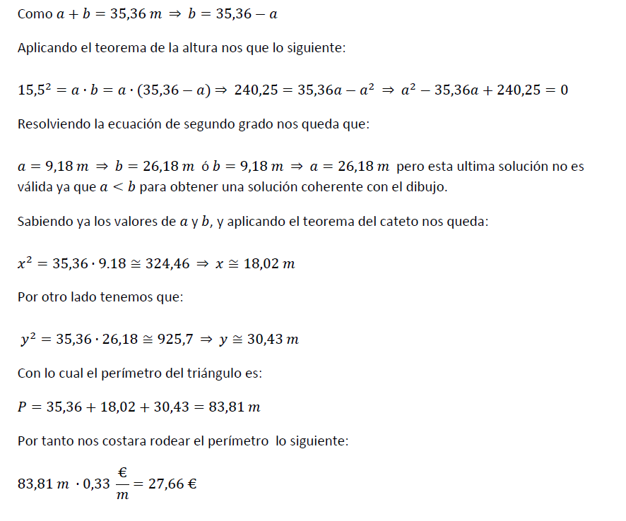 Ej 1. Se quiere rodear con cable por el exterior de un terreno con forma de triángulo rectángulo.