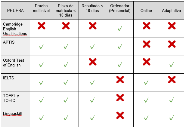 Todas estas pruebas aspiran a un amplio reconocimiento por parte de instituciones de educación superior y empresas de toda índole. No obstante, las pruebas de Cambridge English Qualifications son aún las más reconocidas, y dada la relativamente corta trayectoria y variada competencia de las pruebas multinivel, cabe asegurarse siempre de antemano de que son válidas para nuestros objetivos.