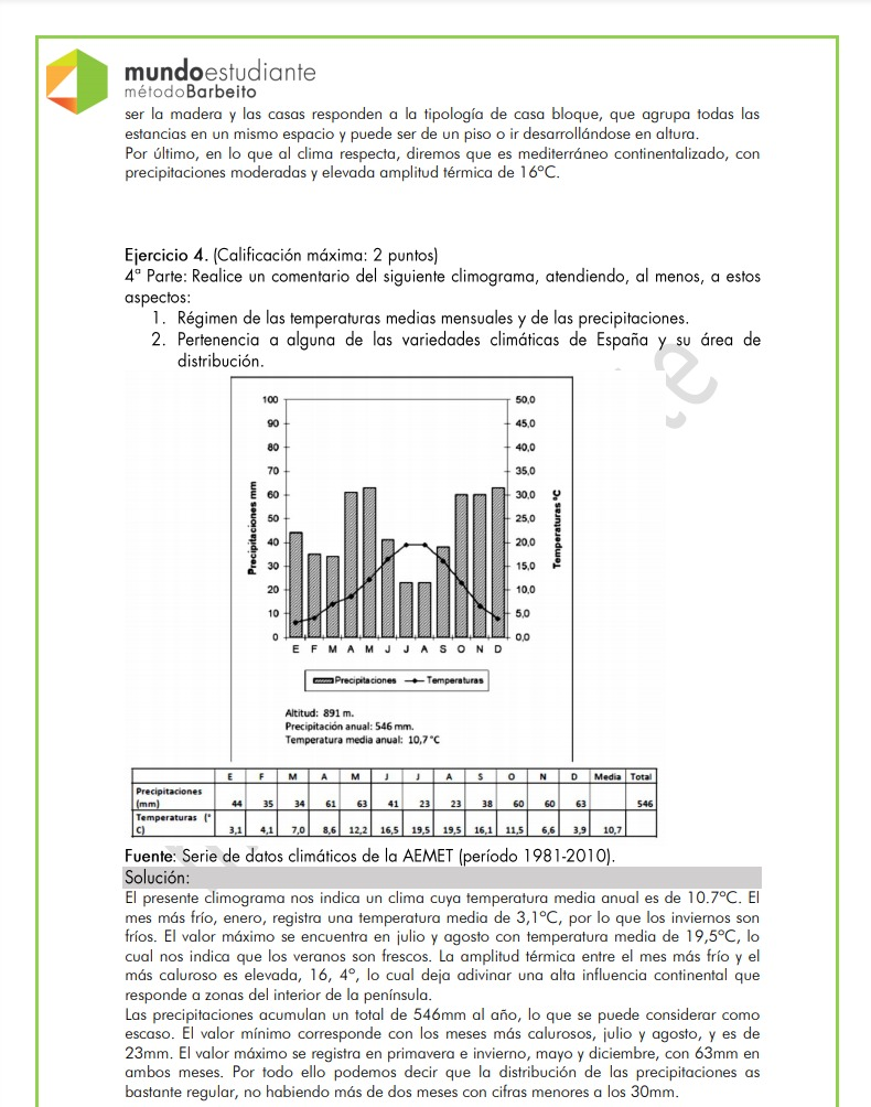 Parece fácil y lo es. Solo es cuestión de práctica. A continuación, te ofrecemos un ejemplo de resolución de climograma para que sea más sencilla la comprensión. Además, en este enlace podrás consultar todos los exámenes resueltos de años anteriores.