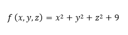 La función escrita anteriormente tiene tres variables independientes, y una constante 9. Dichas variables son independientes entre sí, y pueden coger cualquier valor. La constante como dice su nombre siempre va a tener el mismo valor independientemente de los valores de las variables independientes.